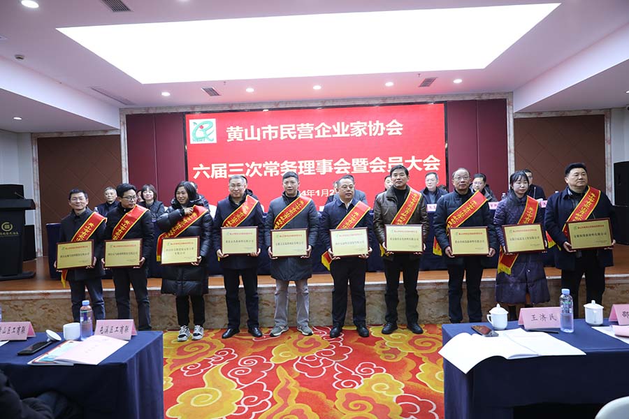 2024年1月26日下午,黃山市民營企業(yè)家協(xié)會六屆三次常務(wù)理事會暨會員大會在屯溪召開,我公司(副會長)參加了此次大會。會上表彰了10家“黃山市有突出貢獻的民營企業(yè)”和31位“黃山市優(yōu)秀民營企業(yè)家”,并舉行了授牌儀式。我公司被授予“黃山市有突出貢獻的民營企業(yè)家”榮譽稱